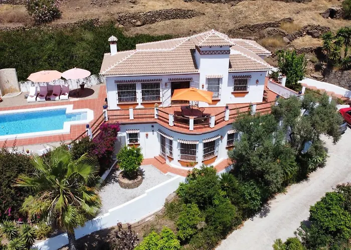 Villa Los Naranjos别墅距离Sayalonga市中心有10分钟的步行路程,还配有游泳池. 这栋别墅为客人提供大厨房,2间卧室;房内配备卫星频道平板电视 和气候控制.